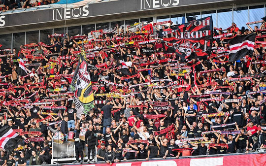 Les supporters de Nice avant le match de Ligue 1 McDonald's contre Lyon à l'Allianz Riviera, le 18 octobre 2025. Sylvain Thomas/Icon Sport